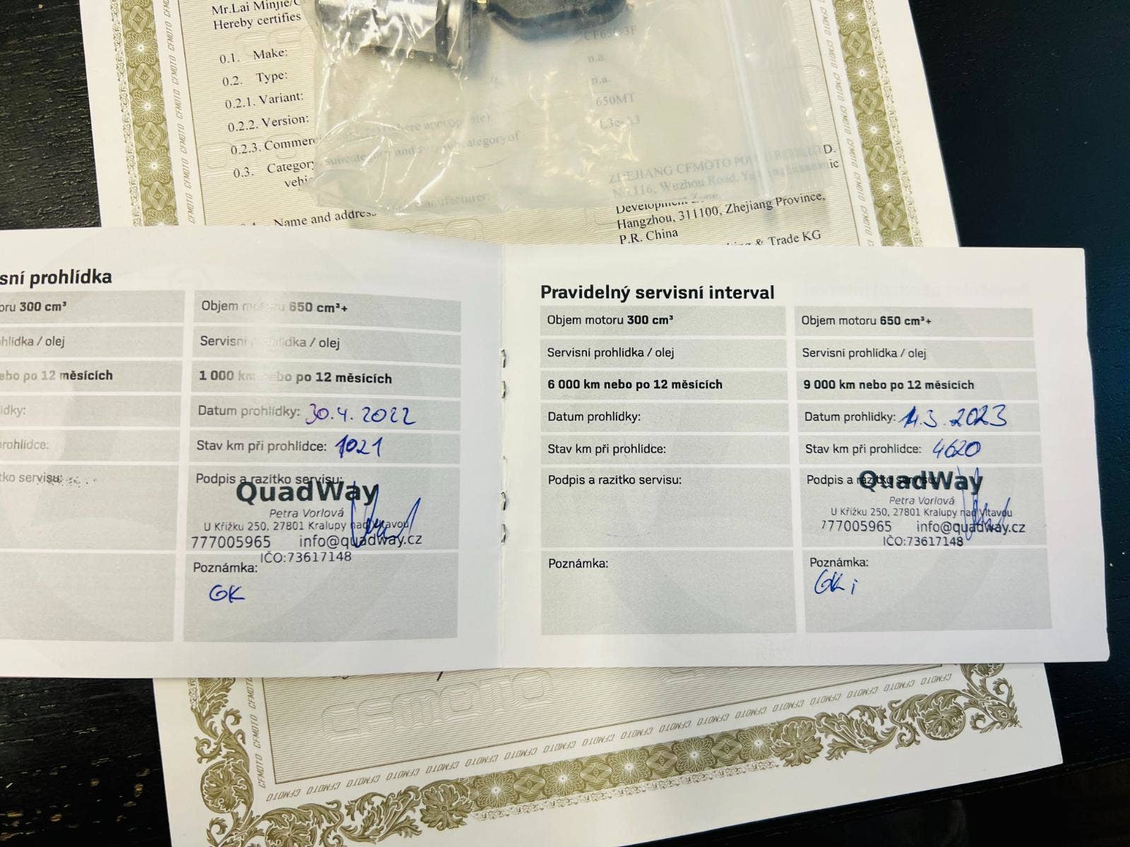 - všechny naše motocykly mají CZ doklady a platnou TK