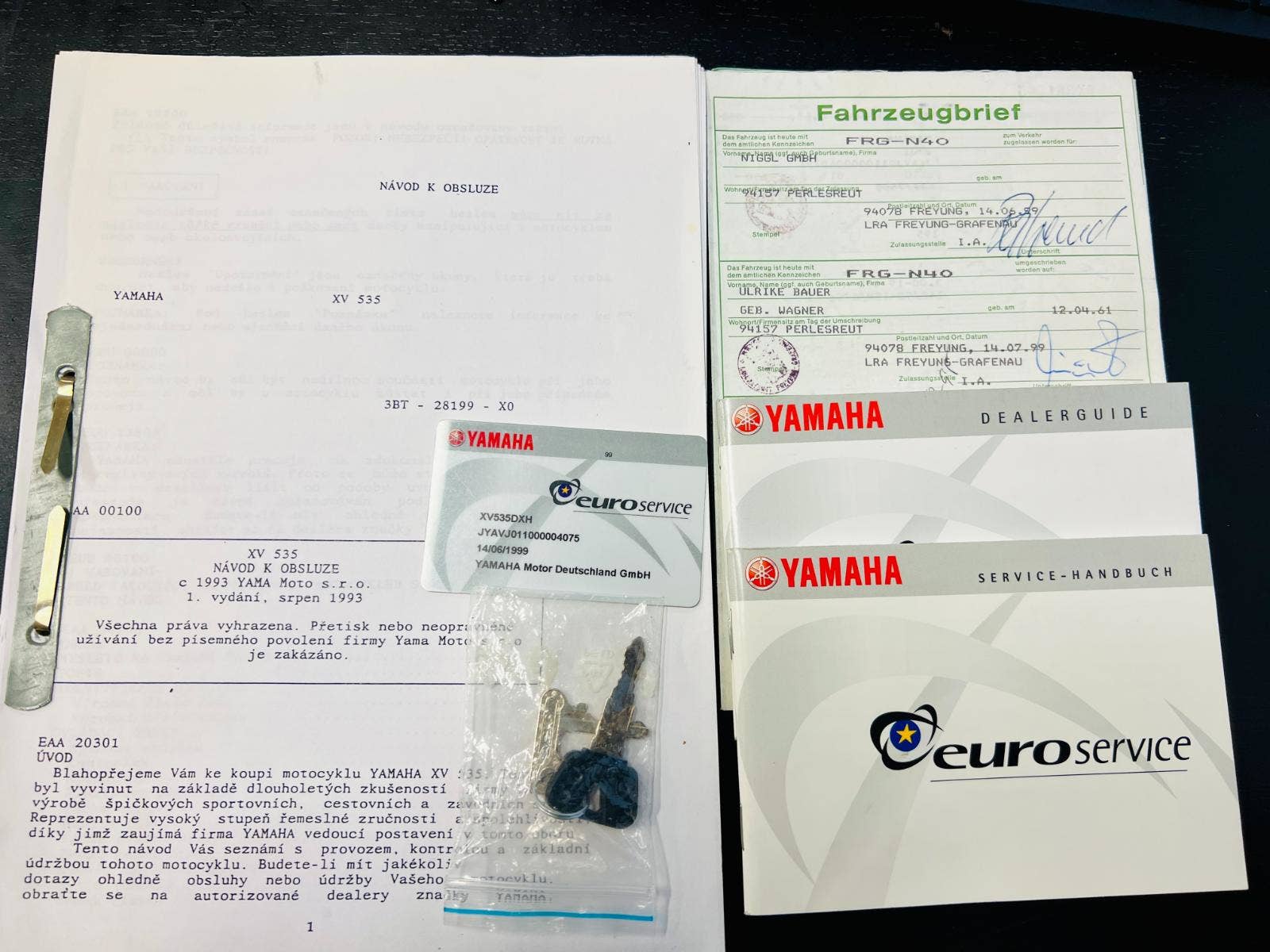3. majitel, v ČR od roku 2000, 2x klíč, manuál, servisní kniha. Motocykl ve velmi zachovalém stavu, v původním laku, pouze drobná odřenina na konci výfuku. Nová baterie, olej, vzd filtr, vyčištění a seřízení karburace. TK do 10/2029.